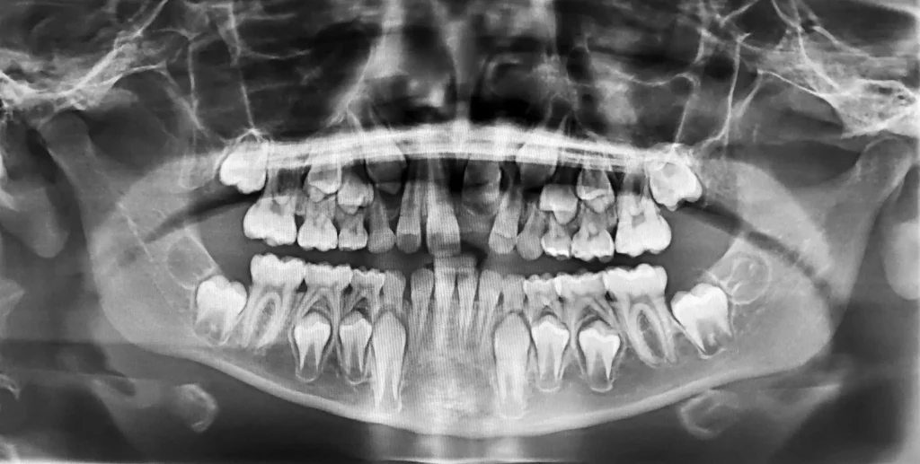 Ovo je često je prvi korak, jednom snimkom cijele čeljusti može se vidjeti postoji li skriveni zub u kosti i kakav je položaj njegovog korijena.